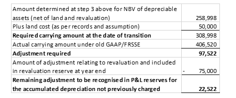 In addition, if under FRS 102/FRSSE, assets or liabilities were not recognised under the rules of old GAAP, an adjustment to retained earnings will be required where this adjustment is applicable. It is unlikely that an adjustment will be required in this area where the previous entity adopted Irish/UK GAAP/FRSSE/FRS 102 as the requirements for measurement and recognition were similar to FRS 105 (other than in relation to deferred tax under FRS 102 as discussed above and the requirement to split out intangibles as discussed above).