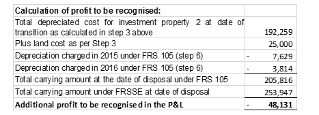 Therefore in both cases on transition an adjustment is required to derecognise the investment property at fair value and recognise the property at cost less depreciation and impairment at that date and since the date of transition and the related deferred tax if applicable (note in reality the deferred tax on this fair value adjustment would likely be derecognised as one journal with deferred tax on all other timing differences as discussed in Section 24 of FRS 105, however we have shown the derecognition here for educational purposes). An adjustment may also be required where investment property was held at fair value and this were sold since the date of transition (i.e. in the comparative year).