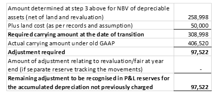 Likewise where previously fixed assets were depreciated over a set useful life and a reassessment was made at the date of transition an entity cannot post the difference into opening reserves on transition, instead the change of policy must be made in the comparative year and adjusted prospectively with the relevant disclosures included.