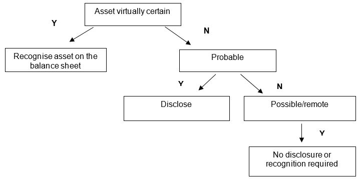 - An asset is only recognised when the inflow of economic benefits are virtually certain.